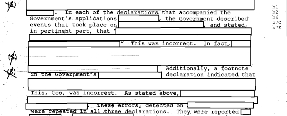 Moreover, solely from the documents provided to EFF, it is evident that the FBI is withholding information on an inconsistent and arbitrary basis. For example, one IOB report, which details the issuance of NSLs without proper authority in the wake of the attacks on September 11th, was inadvertently included twice in the FBI’s document release: one is nearly entirely redacted; the other, almost entirely free from redactions: