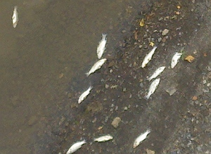 This time the kill is much closer to the capitol city. In fact, the dead fish are being spotted along a newly opened pedestrian bridge.