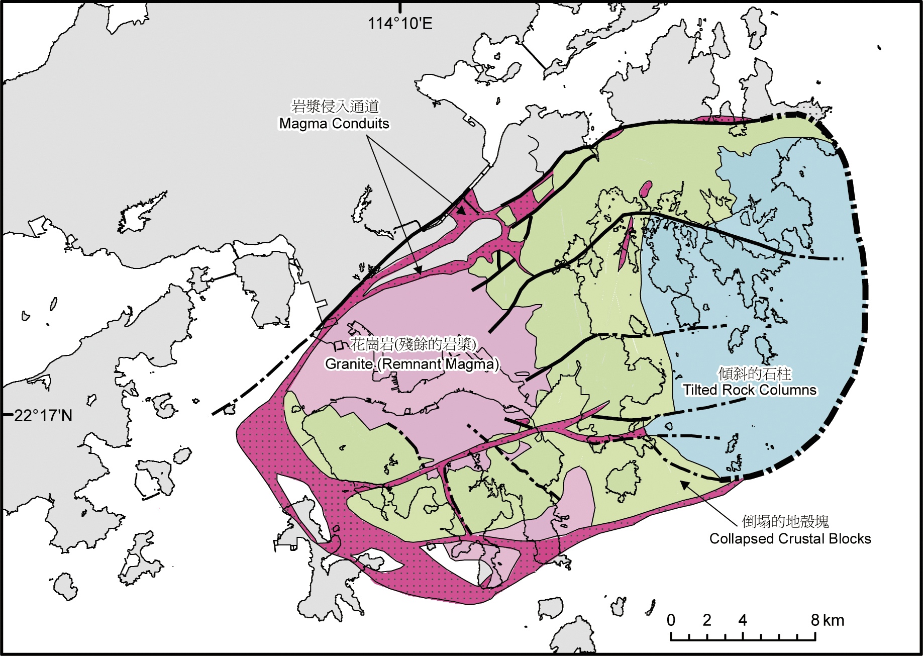Hong Kong geologists have revealed for the first time the full extent of an ancient supervolcano with a diameter of 18km sitting beneath the former British colony.