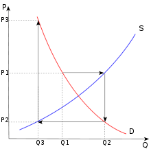 First of all, commodities as a group are not commoditized – they are not all the same. For instance, the amount of gold in the world is largely fixed relative to annual gold production. Along with its historical position as a store a value, Gold’s consistent volume about ground is a primary reason for its currency-like quality; i.e. almost entirely driven by overall liquidity. Corn production, on the other hand can vary greatly from year to year given the amount of land devoted to it and the weather. Oil is somewhere in the middle because production can vary, but the worlds known reserves are relatively fixed. The resulting differences in price volatility have been studied ad nauseam and are most simply articulated by the so-called ‘cob-web model’ (see chart below).