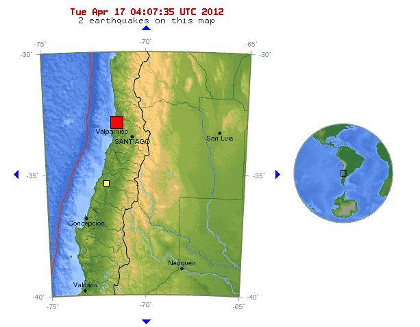 One elderly man died as a result of a heart attack brought on by the quake, which struck 26 miles north-northeast of Valparaiso, and 69 miles northwest of the capital Santiago, but there were no other reports of injuries.