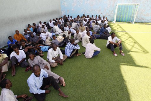 Virtually all of the detainees say they are innocent migrant workers, and in most cases there is no evidence that they are lying. But that is not stopping the rebels from placing the men in facilities like the Gate of the Sea sports club, where about 200 detainees — all black — clustered on a soccer field this week, bunching against a high wall to avoid the scorching sun.