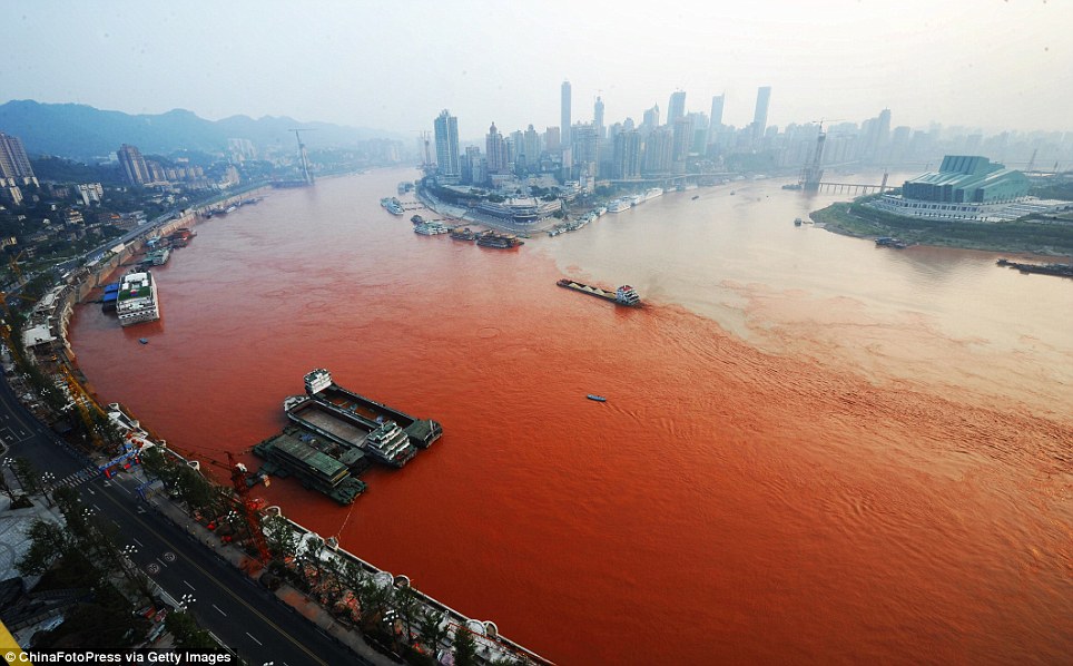 Yangtze river turns red in China