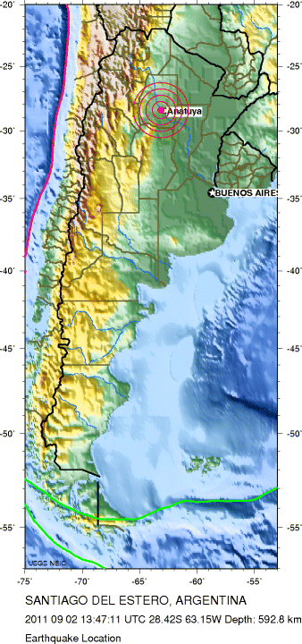 The U.S. Geological Service says the quake’s epicenter was 80 miles (130 kilometers) southeast of Santiago del Estero, a provincial capital of 250,000 people and the 12th-largest city in Argentina.
