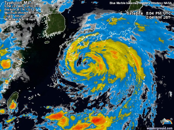 Typhoon Ma-on is threatening the Japanese island of Shikoku. According to forecasters, the typhoon is likely to make landfall on Wakayama Prefecture (Honshu Island) early on July 20th. Later on Wednesday, July 20th or early on Thursday, July 21st, the typhoon, weakened by that time into a category-one storm, is expected to hit the south of Kanto Plain and Tokyo-Yokohama metropolitan area. Consequently, heavy downpours and strong winds are forecast while flash floods and landslides remain possible. Power cuts, telecommunication and water outages are possible in affected areas. Transport disruptions are also expected as the typhoon could force the closure of several airports including Osaka International airport, Tokyo International Airport (Haneda) and Narita International Airport. Ferry and train services (including the high-speed trains Shinkansen) are likely to be disrupted in southern and central Honshu.
