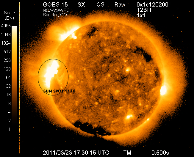 Since then it has rotated to the far side of the Sun and it looks as if it was busy doing so. This sunspot will have the power to generate large solar flares for the next couple weeks as it crosses the Earth facing side of the Sun.