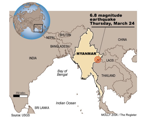 A Burma official said dozens of people were killed in two towns close to the epicentre.